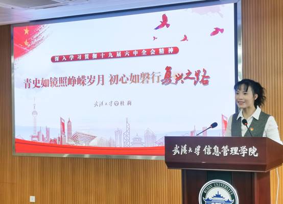 2021年11月8日至11日,中国共产党第十九届中央委员会第六次全体会议在北京隆重召开。此次会议重点研究全面总结党的百年奋斗的重大成就和历史经验问题。杜莉老师以《青史如镜照峥嵘岁月,初心如磐行复兴之路》为题,深入浅出的带领大家解读了十九届六中全会《决议》精神。她首先用“1、2、3、4、5、10、13”等一组数字以及数字背后的含义,向大家解读六中全会《决议》的基本框架和主要内容。进而旁征博引,以大量详实的数据、实例,向大家阐释了中国共产党的初心和使命,阐述了中国共产党为什么能够由弱变强,领导中国人民取得革命、建设、改革的伟大成功。整场报告主题鲜明、重点突出、说理透彻、生动深刻,具有很强的指导性和针对性。